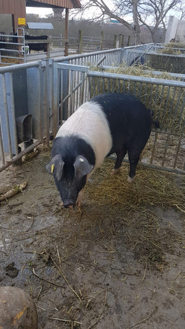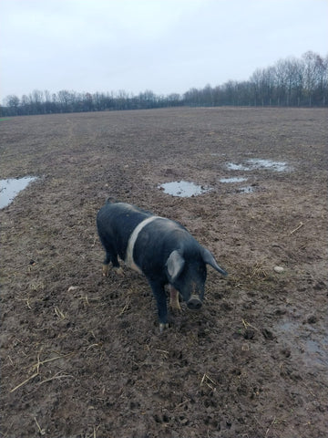 Unser Schwein 401 ist ein Märkisches Sattelschwein und auf den Ackerflächen von Bauern Henrik Staar im Gut Hirschaue aufgewachsen, Freilandhaltung natürlich! Es war ein Mädchen und ist am 17.05.2018 als komplett schwarze Tochter von Sattelschwein-Herdbucheber Smirre und Kreuzungssau „twentytwo“ geboren. Wenn...