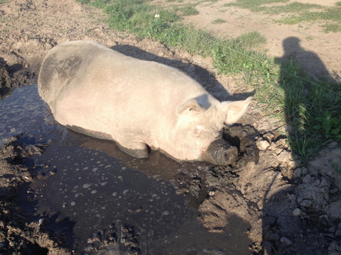 Schwein 376 ist ein Freilandschwein von Anja Koch. Wie alle Schweine liebt diese Altsau ein ausgiebiges Modderbad in der Suhle. Das ist ein echtes Wellnessprogramm. Denn die Modderkruste auf der empfindlichen Schweineschwarte schützt das Tier vor Sonnenbrand. Die Altsau hat einige Sommer...