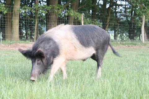 Falls sich jemand fragt, warum die Schweine von Gut Hirschaue eigentlich "Sattel"schweine heißen, der hat hier die Antwort. Mehr Sattel geht nicht! In diesem Fall ist es sogar ein Märkisches Sattelschwein. Das heißt, dass der Papa ein Wildschwein ist (der...