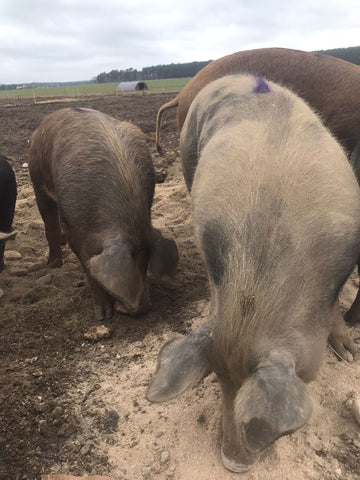 Die Schweine aus diesem Wurf sind am 26.07.2021 auf dem Biohof Solf geboren und haben dort ein artgerechtes Leben in Freilandhaltung verbracht. Den Stall haben sie also nur wahlweise aufgesucht, wenn es ihnen draußen in der Sonne zu heiß war...